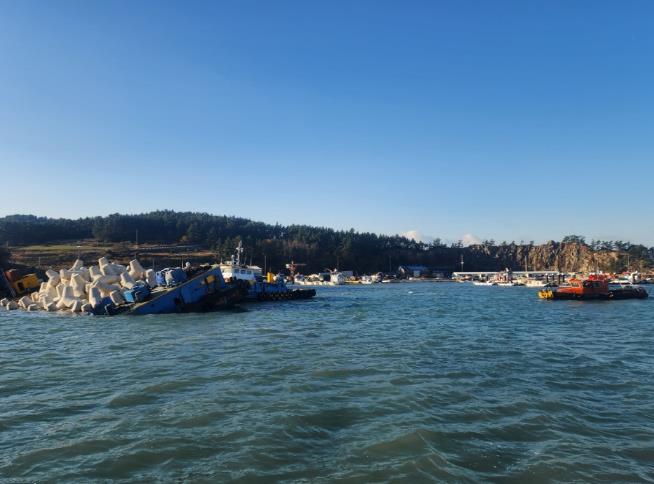 | 완도 청산도 항내서 바지선 기울어 침수... 완도해경 신속 대응 |