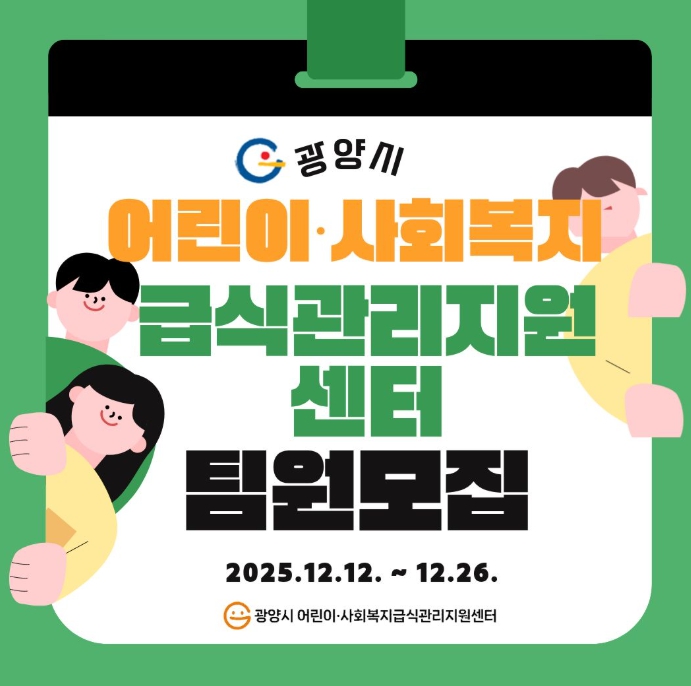 | 어린이·사회복지 급식관리지원센터, 2026년 팀원 4명 공개 채용 |