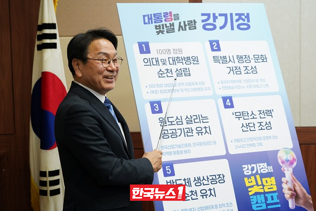 강 후보는 “당장의 논란을 피하려고 100명 규모의 의대와 병원을 절반으로 쪼개서는 안 된다”며 “그렇게 되면 기초의학교수를 확보하는 일도, 체계적인 교육으로 의료인력을 양성하는 일도, 수련병원 규모를 유지하는 일도 어렵다. 의대는 단순히 정원 숫자로 나눌 수 있는 교육기관이 아니다”고 말했다. 강 시장은 이어 “양질의 의료 인프라와 우수한 교육체계를 통해 의료인력이 지역에서 양성되고, 지역에 머무르며, 지역에 제대로 된 의료서비스가 뿌리내리도록 해야 한다”고 덧붙였다.
