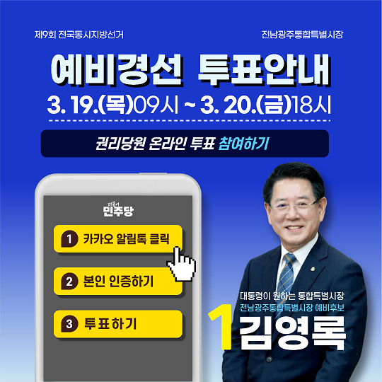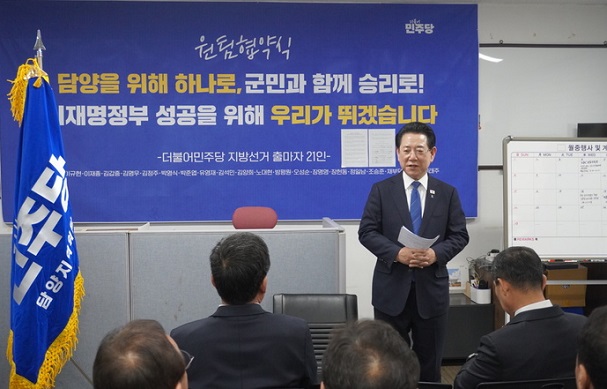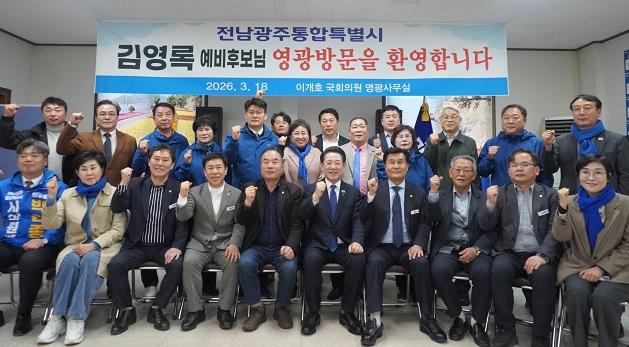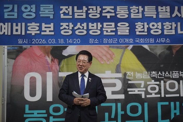 당원들의 열렬한 환호 속에 장성지역위를 찾은 김 예비후보는 “통합특별시 출범과 함께 첨단산업 유치, 새로운 일자리 창출 등 좋은 일도 많겠지만, 지역 간 갈등 조정과 균형발전 등 난제도 수두룩 하다”면서 “특별시의 미래를 책임지고 수많은 난제를 해결할 수 있는 사람은 그 길을 잘 아는, 연습이 필요없는 김영록 뿐”이라고 강조했다. ‘대통령이 원하는 혁신행정가’로서 성과 등 다른 후보들과의 차별성도 부각했다.