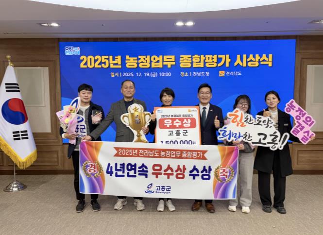 | 고흥군, 농업강군 위상 재확인... 농정업무종합평가 4년 연속 ‘우수’ |