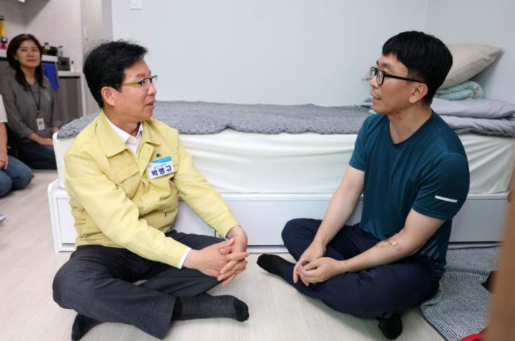 | 박병규 광산구청장이 지난해 9월 추석 명절을 앞두고 ‘살던집 프로젝트’의 ‘중간집’을 찾아 입주해 생활하고 있는 주민의 안부를 살폈다. |