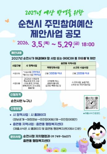 | 순천시, 2027년 예산편성을 위한 주민참여예산 제안 접수 |