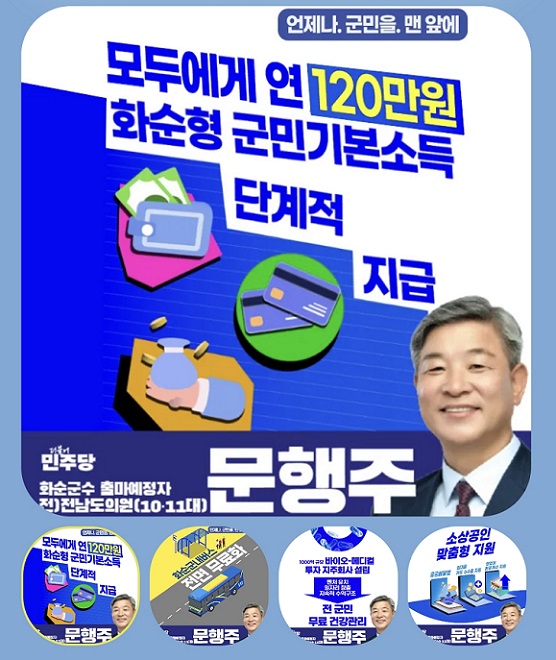 문행주 예비후보는 “이재명 정부 국정철학의 핵심 추진 과제와 연계한 군민기본소득은 실질적인 민생 안전망”이라며 “화순 안에서 돈이 돌게 함으로써 군민 체감 효과를 극대화해 군민의 생활 안정을 이루겠다”고 말했다.