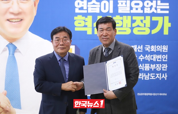 | ▲ 이병훈, 김영록 후보 ‘탄탄캠프’ 총괄상임선대위원장, 천한욱 전 신정훈 예비후보 선대본부 총괄특보단장 |
