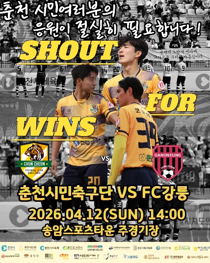 춘천시민축구단은 오는 12일 오후 2시 송암스포츠타운 주경기장에서 FC강릉을 상대로 2026시즌 K3리그 두 번째 홈경기를 치른다. 이번 경기는 홈 개막전 승리의 기세를 이어 시즌 초반 상승 흐름을 이어갈 중요한 경기다.또한 춘천시민축구단은 지난 8일 전국체육대회 강원도 대표 선발전에서 FC강릉과 맞붙어 승부차기 끝에 아쉽게 패하면서 이번 경기에서 더욱 집중력 있는 경기력을 바탕으로 좋은 결과를 거두겠다는 각오를 다지고 있다.