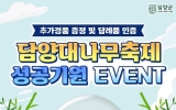 여수 박시현 기자2026. 04.03[한국뉴스1-박시현 기자]담양군이 ‘제25회 담양대나무축제’의 성공적인 개최를 기원하고 고향사랑기부 참여 문화를 확산시키기 위해 4월 6일부터 특별 이벤트를 진행한다. ‘제25회 담양대나무축제 성공기원’이벤트는 4월 6일부터 5월 15일까지 40일간 진행되며, 이벤트 기간 내 담양군에 10만 원 이상 기부하면 별도의 신청 절차 없이 자동으로 응모된다. 군은 추첨을 통해 총 90명의 기부자에게 담양딸기잼, 루비벨 토마토 등 담양의 정성이 담긴 추가 경품을 증정하며, 기부자들이 받은 답례품의 매력을 공유하는 ‘답례품 인증 이...